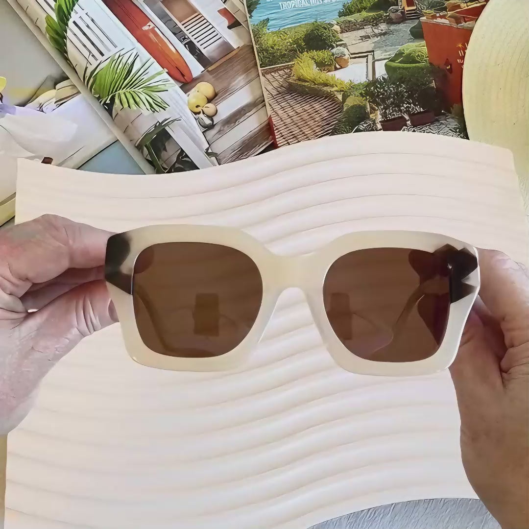 Maeve Sand, this gorgeous square frame features a light cream (sand) frame with brown tortoiseshell splice. Complimented with brown polarised lens and 100% UV protection, Maeve Sand will take you effortlessly from the beach to the bar!